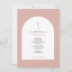 En vacker dopdesign med modern rosa båge, blå kors och en grekisk-ortodox ikon av Jesu dop på baksidan av kortet. En religiös design som är ideal för en babyflickas dopdag. Matchande brevpapper och dekorationer kan ses i denna designs samling.
