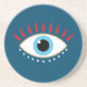 Illustration av ett grekiskt ont öga med röda ögonfransar.
