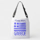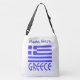 Personligens korssäck är blå med den grekiska flagga och ord eller namn GREKLAND nedanför. Flagga visar blått och vitt rand med blått och vitt kor i det övre högerna. Lägg till ditt namn för en personlig eller skapa en gåva. Roligt för familjeåterföreningar. Underbar för att fira Oxi-dagen.