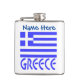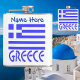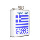 Personlig-kolv med blå av grekiskt flagga och ord GREKLAND nedan. Flagga visar blått och vitt rand med blått och vitt kor i det övre högerna. Framför allt, i blå brev, lägg till ett namn för en speciell beröring eller skapa en gåva. Roligt för att ta in din ouzo eller Metaxa för resor. Underbar för att fira Oxi-dagen.