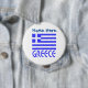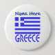 Knappnål för personlig med grekiska flagga och ord, GREKLAND, nedan i blått. Flagga visar blått och vitt rand med blått och vitt kor i det övre högerna. Lägg framför allt till en namn för personlig till en stuffergåva. Roligt till bära vid familjeåterföreningar.