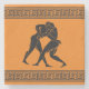 En marmorsten i orangen underlägg två brottande idrottare i grekisk konst stil och grekisk gräns.
