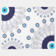 Modern vit filt tryckt med den grekiska marinblått, turkos och vit nazär ond öga-symbolen mandalas