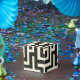 Fyrkantig klassisk stil-förinställningsruta med en bild av ett svart och brunt grekiskt nyckel mönster. Se matcha konkotti, favärde-tagg, presentsäckar och papper förpackning. Visa hela samlingen för favoritruta i Toga i SPECIELLA TUUCHES | Avsnittet Party favors.