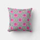 Pillow i grekisk nyckel eller labyrint mönster i ljust silver grått / grått och mörkare grafitgrått accentuerat med djup fuchsisk rosa