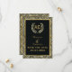 Svarta, guld grekiska nyckel och bröllop spara datum-lafens utandning med initialer med en lagerkrans och ett gräns med grekiska nyckel eller Meander eller grekiska mönster gräns i guld och svart.