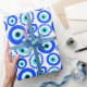 Färgblått och vitt mönstrat pappert omslag med det symboliska grekiska Öga. Förmodad att vara ett skydd mot ondska. Se på många land, inklusive Grekland och Turkiet.