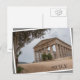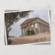 Kort över ruinerna i det gamla grekiska templet Segesta, Sicilien i Italien som ses under ett gammalt olivträd träd på en grumlig dag med ett vitt kant och texten "Sicilien". Det kommer lite roterat för att skapa illusionen av ett löst äggkort.