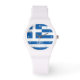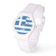 Grekiska för manar flaggaarmbandsur och kvinnor. Sportiga klockor med flagga av Grekland. Personalizable med den beställnings- monogramen.