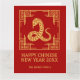 Denna eleganta nyårsmönsterdesign har en guldfärgad kinesisk orm med en grekisk ornamentram på en röd bakgrund.