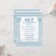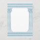 Elegant grekiskt partivis kort med minimalistiska tempelpelare och grekiskt meander-mönster i blått. Perfekt för ditt evenemang med tema Antikens Grekland eller Antikens Rom.