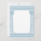 Elegant grekiskt partivis kort med minimalistiska tempelpelare och grekiskt meander-mönster i blått. Perfekt för ditt evenemang med tema Antikens Grekland eller Antikens Rom.