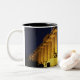 Grekiskt tempel på natten med gula och orangar Två-Tonad mugg