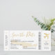Boardingkortet Flygplan Biljett Spara datuminbjudan till ett destinationsbröllop på Kreta i Grekland, med en romantisk flygplansikon och en bakgrund med det moderna eleganten guld karta med bakgrund av typsnitt och på baksidan med rese- och inkvarteringsinformation så att gästerna kan börja planera sitt resa för att fira giftermål i mitten av en semester. Ett av många reseteman sparade datumen och inbjudningar skapat efter att ha arbetat direkt med kreativ och äventyrligt par som har rest runt tillsammans eller mött när de arbetat inom resebranschen. Kontakta Zazzle Designer för Pappra grafdestinationer direkt via Zazzle-chattan och få information om hur du anpassar mallen med bröllop-informationen i åtanke.