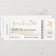 Boardingkortet Flygplan Biljett Spara datuminbjudan till ett destinationsbröllop på Kreta i Grekland, med en romantisk flygplansikon och en bakgrund med det moderna eleganten guld karta med bakgrund av typsnitt och på baksidan med rese- och inkvarteringsinformation så att gästerna kan börja planera sitt resa för att fira giftermål i mitten av en semester. Ett av många reseteman sparade datumen och inbjudningar skapat efter att ha arbetat direkt med kreativ och äventyrligt par som har rest runt tillsammans eller mött när de arbetat inom resebranschen. Kontakta Zazzle Designer för Pappra grafdestinationer direkt via Zazzle-chattan och få information om hur du anpassar mallen med bröllop-informationen i åtanke.