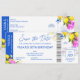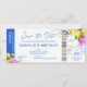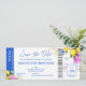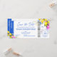 Blå Bougainvillea och citron Amalfi Positano Medelhavsstil festbiljett spara datum boardingkort inbjudan mall