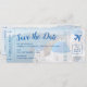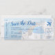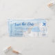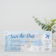 Ett resepass för destinationsbröllopet i flygplan biljett sparar datumkortet för en Santorini i Grekland Bröllop, med den ikoniska blådomkyrkan som förbiser Agean Sea och klippor. Använda designen verktyg för avancerad utskrift av formgivningen, t.ex. textändring färg, typsnitt och placering samt kortbakgrund och flygplansbakgrund färg. Kontakta mig om du vill koordinera objekt som du är tittar för, eller använda "överför den här designen" för att skapa ditt eget på ett Zazzle-objekt.