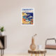 På reseaffischen i Grekland visas fiskebåtar i hamn, med kustpromenad och berg i avstånd.