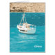 Vit yacht mot bakgrund av blått hav i Grekland, målareffekt.