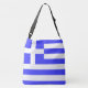 Greklands flagga visas här i nio blå och vita alternerande ränder. För att representera den östortodoxa kristendomen finns ett kors på den övre högra sidan (flaggans inre sida). Ett perfekt sätt att dela din kärlek till allt grekiskt på Oxi-dagen eller när som helst. Bilden här tar upp hela designutrymmet och använder lite konstnärlig frihet för att få flaggan att se så bra ut som möjligt på varje vara. Flaggan antogs officiellt som symbol för Grekland den 13 januari 1822 vid den första nationalförsamlingen i Epidaurus. Traditionella legender säger att ränderna representerar antalet stavelser (nio) i de grekiska orden för FRIHET ELLER DÖD. Andra säger att de representerar bokstäverna i det grekiska ordet för FRIHET. Andra föreslår att varje rand representerar en av de nio musorna i mytologin. De blå och vita färgerna