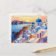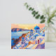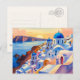 I denna sjudande affischteckning med kort-stil fångas den koniska solnedgången i Santorini i Grekland - med dess vita kupoler, blå tak- och klippmarksarkitektur som lyser i mjukt gyllene ljus. Perfekt för att resa älskare, grekiska entusiaster eller någon som drömmer om Medelhavet rymmer. En färgstark hyllning till en av världens mest pikresska destinationer.