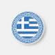Greklands flagga med grekiskt nyckel-mönster slitna rund design magnet Denna magnet är perfekt för dig att njuta av medan du är på semester i Grekland eller om du är stolt över att vara från Grekland eller att ge som en souvenirpresent.