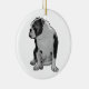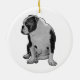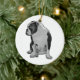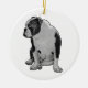 Häng en glad bulldog där ljusen glimmar. Den fina texturen fotograferas vackert nära bågar och klockor. En souvenir som familjer når efter varje år.