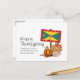 Stilfull, patriotisk GRENADINSK TACKSÄGELSEFirande Julkort, som visar kartkonturen och flaggan för GRENADA & CARRIACOU på en banderollstång med en pumpa och höstlöv mot en vit bakgrund. Framsidan har texten GLAD TACKSÄGELSE - TACK VÄR HERRE FÖR DIN TROFASTHET OCH FÖR ALLT DU HAR GJORT. På baksidan finns ett Anpassningsbart meddelande, som du kan ändra till ditt eget val. Kommer även med svart bakgrund.