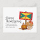 Stilfull, patriotisk GRENADINSK TACKSÄGELSE Höjdpunktskort, som visar kartkonturen och flaggan för GRENADA & CARRIACOU på en banderollstång med en pumpa och höstlöv mot en vit bakgrund. På framsidan står det GLAD TACKSÄGELSE - TACK HERREN FÖR DIN TROFASTHET OCH FÖR ALLT DU HAR GJORT. På baksidan finns ett Anpassningsbart meddelande, som du kan ändra efter eget val. Kommer också med svart bakgrund.