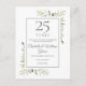 Grey, 25:e bröllop-årsjubileet spara datum meddelande-kort med känsliga land trädgårdsgrönt löv. Anpassa med dina speciella 25-årsjubileum firande-detaljer, med silver-bakgrund på motsatt sida. Designad av Thisisnotme©