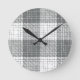 Grey and White Checkered Crosshatch Plaid Rund Klocka