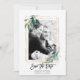 Grey blommigt-fotot bröllop spara datum-kort tack kort