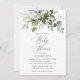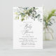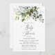 Vänner och familj i inbjudan i stil och ange tonen för din speciella dag med den här charmerande babyduschinbjudan. Designfunktionerna är eukalyptus löv och grön på vit bakgrund.