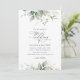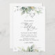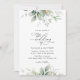Inbjudan vänner och familj i stil och ange tonen för din speciella dag med den här charmerande bröllopsinbjudan. Designfunktionerna är eukalyptus löv och grön på vit bakgrund.