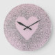 Grey Glitter Canvas Art with Pink Heart Stor Klocka