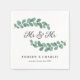 Gay bröllop napkins med Mr & Mr. skrivet i ett vackert skript med en söt ampersand som är inramad av grenery twigs kurvade runt texten i muterade skuggor av coolans grönt.