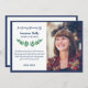 När du älskar minnesmeddelanden kan du anpassa dig med ett foto. Tillkännagivandekortet har en blå gräns som ger fotot och din text en ram och två korsade gröna vingar.