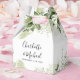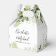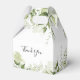 Elegant bröllop-förmånslåda med gröna löv, chic namnteckning skript namn och speciellt datum. Du kan anpassa dig med ditt eget tack till ditt meddelande på motsatt sida. Ett perfekt sätt att tacka gästerna! Designad av Thisisnotme©
