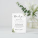 En elegant grön löv bröllop firande tack för att du har ett mottagningskort. Personlig med ditt speciella tackmeddelande som du anger i snyggtens typografi. Du kan anpassa bakgrunden till ditt favorittema bröllop färg. Ett speciellt tack för gästerna. Designad av Thisisnotme©