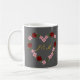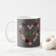 The refined grey palette offers a contemporary twist on classic garden romance, making the vibrant red roses and your custom monogram truly stand out. Whether it's for a morning coffee or a special wedding keepsake, this high-quality ceramic mug is a stylish statement piece.