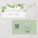 En vacker vattenfärgsgrön design som innehåller din affärs- och QR-logotyp. Den här eleganten namnteckning skript-affärskortet är perfekt för alla typer av företag. Ett enkelt och professionell sätt att presentera ditt företag. Social-medieikoner som ingår i affärskortets utformning för använda. Anpassa dina uppgifter för att skapa ditt eget unika affärskort.