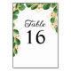 Skapa unika kort för bröllop-bordsnummer med emerald grönt och guld eucalyptus och svart text på vit bakgrund. Med mallen kan du enkelt anpassa bordsnumret på båda sidor.