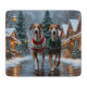 This festive design captures the joyful spirit of the holiday season, featuring an adorable dogs.Nestled in a winter wonderland, complete with a decorated Christmas tree, and beautifully wrapped presents. Snowflakes gently fall, adding a magical touch to the scene, while the vibrant colors of the holiday decorations create a warm and cheerful atmosphere.