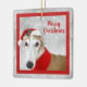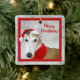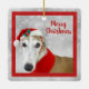 Greyhound-jul - en röd fawn och vit greyhound klädd i en röd julhatt och röd krage satt på silver grått vid snö. Ramad med en röd kvadrat ram. God jul i det röda skriptteckensnittet kan vara personlig med ditt meddelande.
