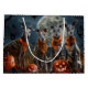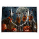 Släpp lös den kusliga anden med denna kusliga Halloween-design med en flock hundar under en mörk, månbelyst himmel, omgiven av fladdermöss och lysande pumpor. Perfekt för dem som älskar en skymt av skrämmande kul med sina lurviga vänner!