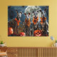 Släpp loss den kusliga anden med denna kusliga Halloween-design med en flock hundar under en mörk, månbelyst himmel, omgiven av fladdermöss och lysande pumpor. Perfekt för dem som älskar en skymt av skrämmande kul med sina fyrbenta vänner!
