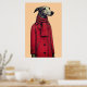 Greyhound in Winter Red Coat, Stylized Drawing Poster