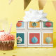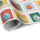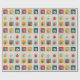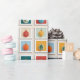A playful grid of nine festive illustrations, each with vibrant Christmas ornaments or stylized tree shapes in triangular arrangements. Framed in bold holiday hues, this cheerful design brings a pop-art twist to seasonal decor and gifting.