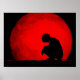Grieving Man Silhouette Against Textured Red Moon Poster