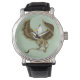 Ett brunt och vitt fantasingriffin under flygning i bakgrunden av grönten